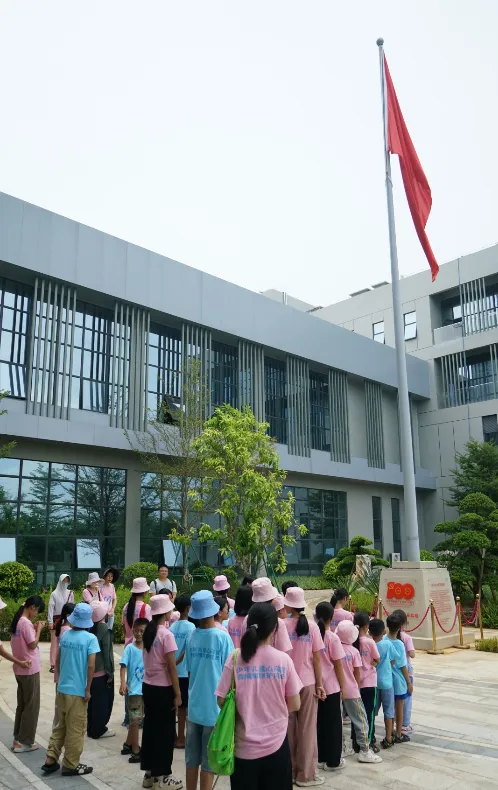 紧接着,孩子们来到了建党百年庆典红旗——070号红旗前。讲解员讲述了Z6·尊龙时凯药业集团与庆典红旗的深厚渊源。孩子们听得津津有味,眼中闪烁着对党和国家的热爱与敬仰。